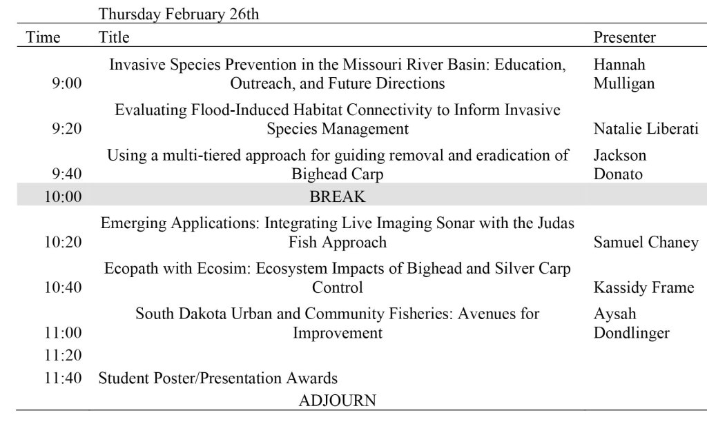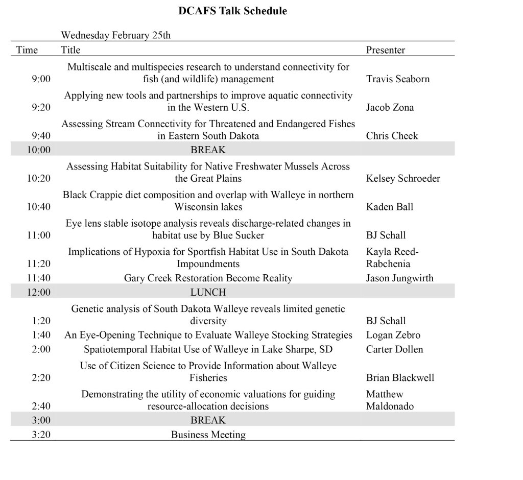 The South Dakota Chapter of The Wildlife Society and Dakota Chapter of The American Fisheries Society’s 2026 annual meeting will be held in person at South Dakota State University, Volstorff Ballroom at the Student Union, Brookings SD from February 24-26.